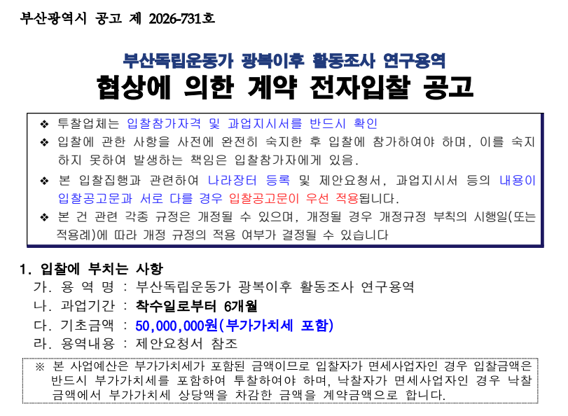 (제2026-731호)공고문_부산독립운동가 광복이후 활동조사 연구용역.pdf (307.68 KB)